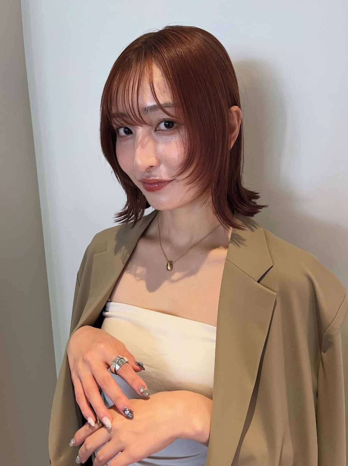 ぷつっと切りっぱなしスタイルに 顔まわりにかかるレイヤーがとっても可愛い!