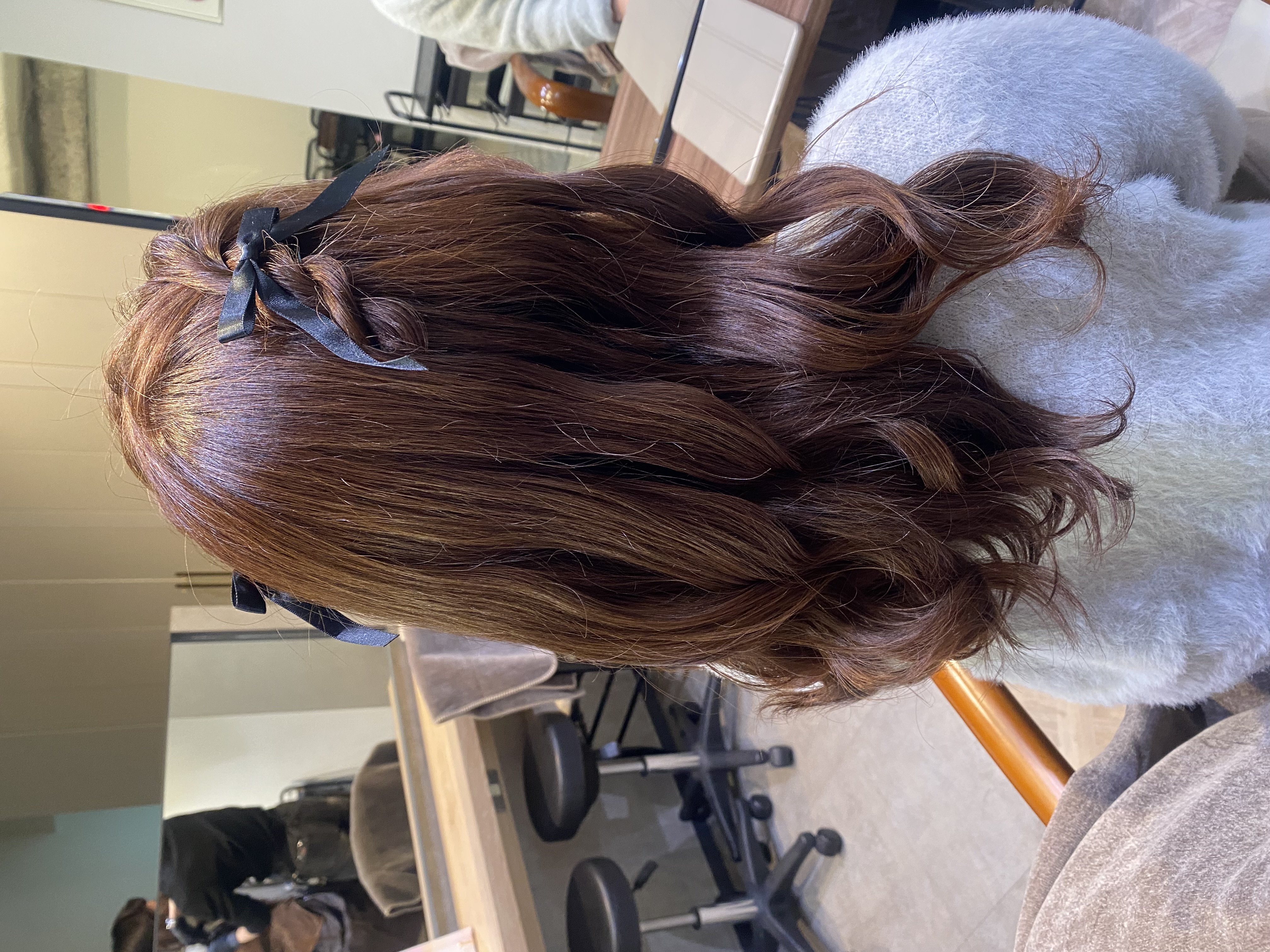 リボンと合わせたねじりハーフツイン!