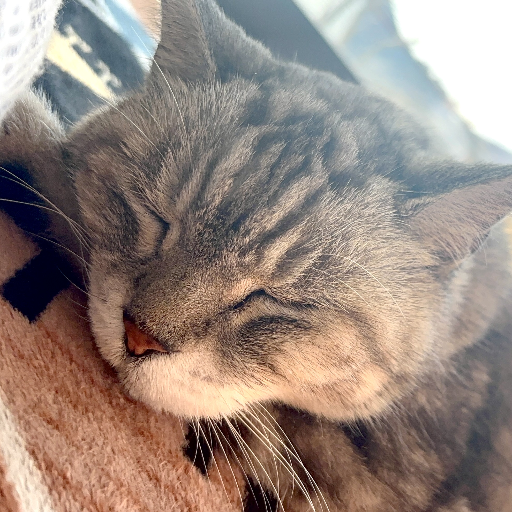 寒い日でしたが、日差しの当たる良い場所を見つけて気持ちよさそうにお昼寝してました♪