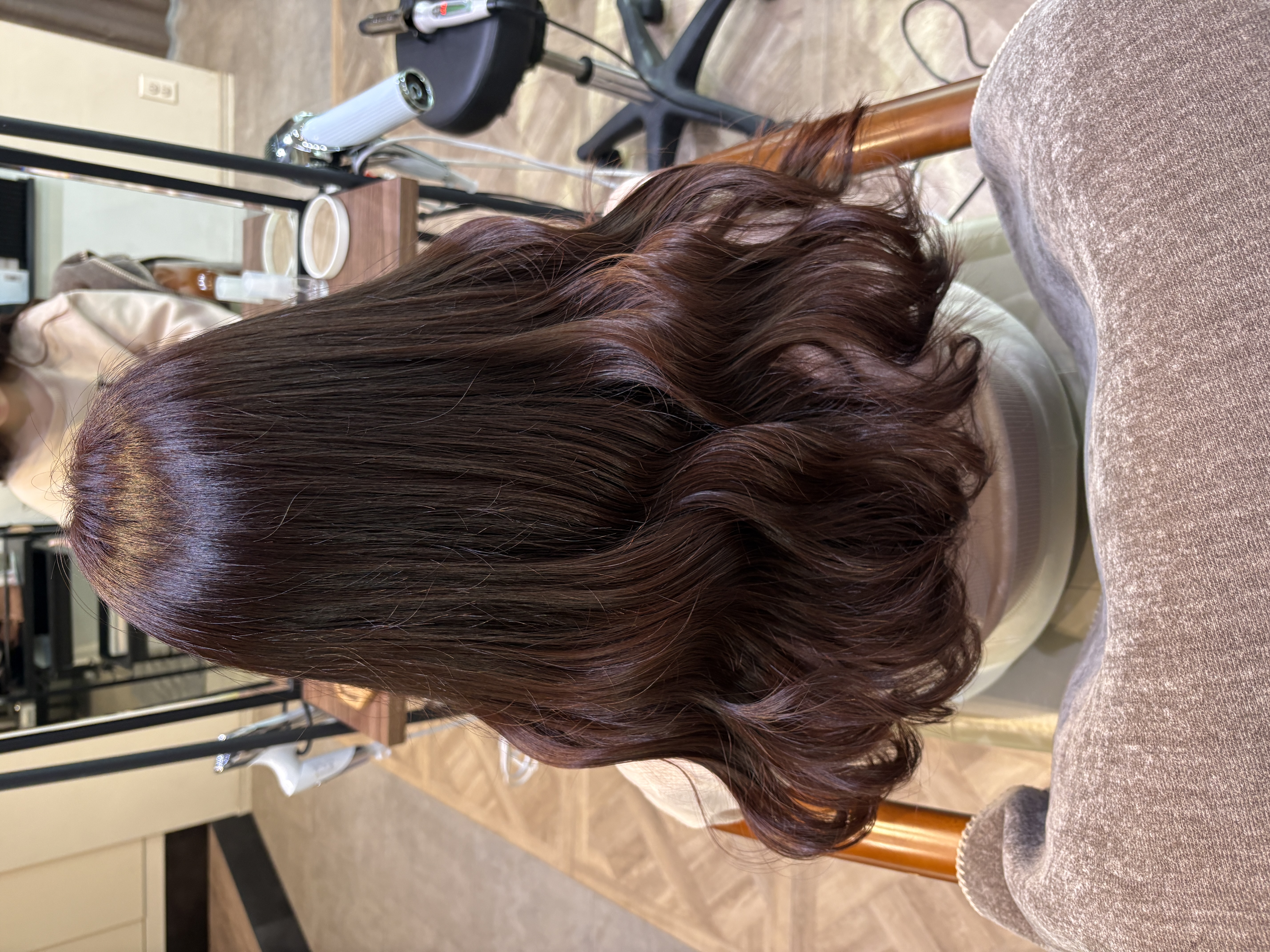 ほんのりピンクが入ったブラウンカラーは艶感たっぷりになるのでダメージのない髪の毛に見せることも得意なカラーです◎